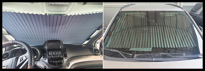 여름철 뜨거운 햇빛 아래에 주차해 놓으면 짧은 시간만 있어도 자동차 실내 온도는 뜨거워져 한증막을 만들게 되죠. 이따 절실히 필요한 것이 차량용 햇빛가리개인데요. 제가 사용하는 이 제품은 강력추천 할 수 있습니다. 실제 차량의 온도가 감당할 수 있을 정도 이내에서 온기를 느끼는 정도입니다. 설치도 간편하여 뽁뽁이만 붙여주면 끝이고, 평소에는 한쪽으로 접었다가 주차 시 펼쳐놓으면 됩니다. 또한 전면 유리를 가리게 되니 차량에서의 잠깐의 휴식을 취할 때나, 프라이버시를 지켜야 하는 때 유용하게 사용하실 수 있습니다.