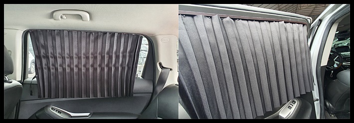 햇빛가리개와 함께 반드시 동반사용 하는 것이 좋은 차량커튼을 소개하자면, 둘이 뗄레야 뗄 수 없는 커플인 듯합니다. 두 가지를 다 설치하고 차에 앉아있으면 아늑한 나만의 개인 공간이 되기도 하고, 햇빛이 전체적으로 차단되기 때문에 실내 온도 상승이 잘 되지 않아, 여름뿐만 아니라 사시사철 아주 편리한 제품입니다. 살짝 단점은 자석이 붙지 않는 차량 문의 경우에는 다소 난감한 경우가 있을 수 있습니다. 제차도 올란도인데 창문에 부착부위가 고무로 되어 있어서, 양면테이프를 확 용 하여 부착하였습니다. 차량의 종류에 따라서 유리창의 사이즈가 다르겠으니, 구입 시 잘 체크하세요.
